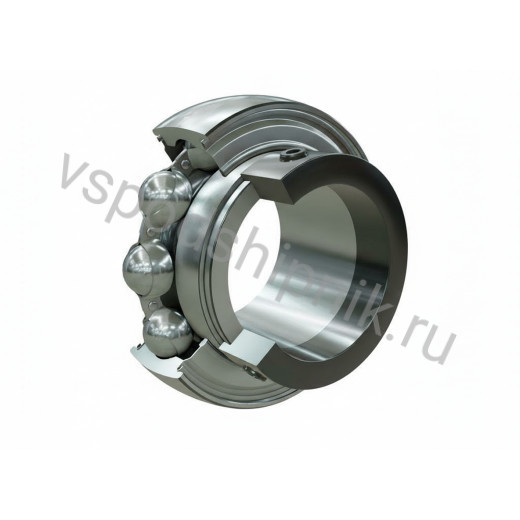 Особенностью подшипника является эксцентричный выступ на широком внутреннем кольце для установки стопорного кольца с чёрным оксидированием. Фиксация на валу достигается поворотом стопорного кольца в направлении вращения и дополнительной затяжкой стопорного винта. Наружное кольцо выполнено с сферической поверхностью. В конструкции присутствуют стальные наружное и внутреннее кольца, удлинённое с одной стороны, шарики, штампованный стальной сепаратор и уплотнения из оцинкованных стальных пластин с нанесённым бутадиенакрилонитрильным каучуком (NBR) повышенной прочности. Уплотнение обладает предварительным осевым натягом и расположено за защитной кромкой. Смазочных отверстий нет. Смазка заложена на весь срок эксплуатации. Рабочий температурный диапазон уплотнений варьируется от -20 до +100 °C, кратковременно допускается до 120 °C. Размеры указаны в дюймах.