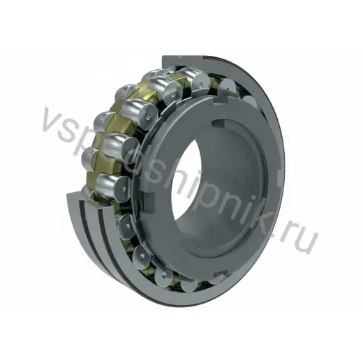 Относится к лёгкой серии. Наружное кольцо оборудовано канавкой и отверстиями для подачи смазки к зоне качения. Конструкция включает наружное кольцо с сферической дорожкой качения, внутреннее кольцо с двумя дорожками качения, латунный сепаратор и два ряда бочкообразных роликов. Внутреннее кольцо имеет направляющие борта для роликов, а его отверстие выполнено с конусом 1:12, что обеспечивает установку на конические валы или с помощью закрепительной втулки Н3144, позволяя фиксировать подшипник в любом положении и упрощая монтаж и демонтаж. Такие подшипники способны выдерживать значительные нагрузки, обладают высокой устойчивостью к динамическим воздействиям и самовыравнивающей способностью до 2°, при этом имеют ограниченную скорость вращения. Используются в опорах узлов и механизмов с большими радиальными нагрузками и возможной несоосностью посадочных мест. Применяются в мощных насосах, вентиляторах, редукторах, лесопильных рамах, гребных валах и прокатных станах. Область применения — универсальная.