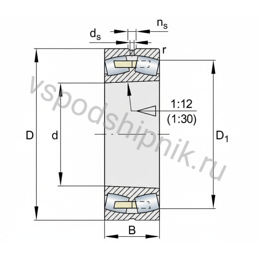 Роликовый сферический двухрядный подшипник 23220-E1A-XL-K-M INA. Неразъемный самоустанавливающийся механизм с коническим отверстием, закрепительной втулкой, фиксирующим кольцом и гайкой. Модели серии X-life характеризуются повышенной грузоподъемностью и увеличенным сроком службы. Конструкция включает массивное наружное кольцо с кольцевой канавкой и тремя смазочными отверстиями, механически обработанный гребенчатый сепаратор из латуни, внутреннее кольцо с двумя боковыми удерживающими бортами и сферические ролики. Допускает осевые перекосы внутреннего кольца относительно наружного в пределах 1,5 - 2 градусов. Рабочий диапазон температур от -40 °C до +200 °C.