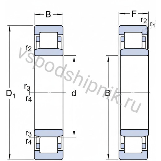 Однорядный радиальный роликовый подшипник с короткими цилиндрическими роликами. Разъемная конструкция с увеличенным внутренним радиальным зазором С3, превышающим стандартный. Количество роликов или их размер увеличены для улучшенного контакта торцов роликов с бортами внутреннего кольца. Включает наружное кольцо с двумя направляющими бортами и внутреннее кольцо без бортов, цилиндрические ролики и штампованный стальной сепаратор, центрируемый по роликам. Сепаратор изготовлен из низкоуглеродистой стали, обладающей высокой прочностью и малым весом. Эксплуатация возможна при температурном диапазоне от -40 °C до +150 °C. Подшипник рассчитан на радиальные нагрузки и допускает осевое смещение вала относительно корпуса в обе стороны.