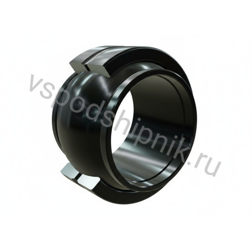 ISB выпускает сферический подшипник скольжения с монолитной конструкцией. Контактные элементы выполнены из стали, обеспечивая сталь/сталь взаимодействие. Внутреннее кольцо по ширине совпадает с диаметром отверстия. Его наружная часть имеет выпуклую сферическую форму, а внешнее кольцо – внутреннюю поверхность с вогнутой сферической геометрией. Для защиты изделие покрывают фосфатом марганца, затем контактные скользящие поверхности обрабатываются смазкой приработочного типа. Особенностью является наружное кольцо с разрезом, которое можно растянуть при монтаже внутреннего кольца. Такая конструкция упрощает использование подшипника, несмотря на его цельность. Это обеспечивает снижение трения и износа в период приработки. Температурный диапазон работы составляет от -50 °C до +200 °C. Кроме некоторых малогабаритных моделей, все подшипники оборудованы кольцевой канавкой и парой смазочных отверстий в каждом кольце для равномерного распределения смазочного материала. Допускается повторное нанесение смазки.