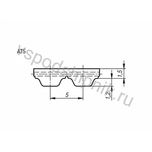 Характеристика зубчатого ремня AT5 (открытый) (W=25)